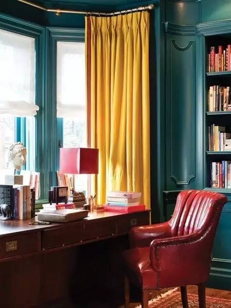 亮黃色的窗簾與椅子相呼應,還好選的椅子面積很小,不然大面積的飽和色空間估計很難舒服的呆著。