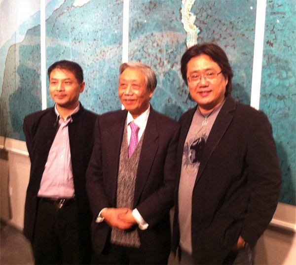 左起外灘游艇俱樂部總經(jīng)理張耀偉、著名畫家陳家泠、公司董事長張偉宗