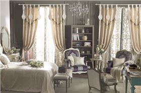 中世紀文藝復興后期:幃帳窗簾懸掛于金屬或木質桿之上并以環(huán)狀飾品加以裝飾,非常之與窗戶貼近,此類的窗簾與實心木制百葉窗的完美組合可以將冬季寒冷的空氣流擋在戶外。