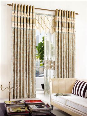 花型、色彩及款式:花型以抽象的花卉圖案為主;色彩濃郁,以深色調為主。如:紫色、玫紅。平過簾頭或波浪簾頭款式均可使用。