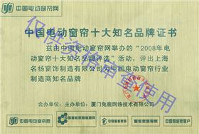 首頁幫助中心中國電動窗簾十大知名品牌證書