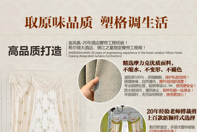 上海文宗緣商貿(mào)有限公司是一家專業(yè)的窗簾布藝軟裝設(shè)計機(jī)構(gòu),由上海歌劇院舞美設(shè)計師、上海書畫院畫師張偉宗先生創(chuàng)建,并與廣東佛山摩力克窗簾布藝定制第一品牌加盟合作,十余年來執(zhí)著追求窗簾布藝軟裝高雅品質(zhì),為上千個酒店,別墅,樓盤,會所等精心打造完美布藝窗簾。主要核心服務(wù)包括;酒店窗簾設(shè)計定做,會所窗簾布藝設(shè)計,別墅窗簾定做,樣板房軟裝飾,政府辦公樓成品窗簾等。