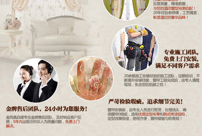 公司擁有近千平方窗簾布藝軟裝展廳,歷經(jīng)十余年的創(chuàng)業(yè)發(fā)展建立一條完整的設(shè)計,銷售,加工,安裝,售后服務(wù)體系。公司擁有高素質(zhì)的設(shè)計師,專業(yè)的生產(chǎn)制作團(tuán)隊,保征產(chǎn)品的領(lǐng)先潮流被越來越多的消費(fèi)者認(rèn)同,公司旗下的九興金鳳凰窗簾成為消費(fèi)者信賴的窗簾布藝品牌之一。