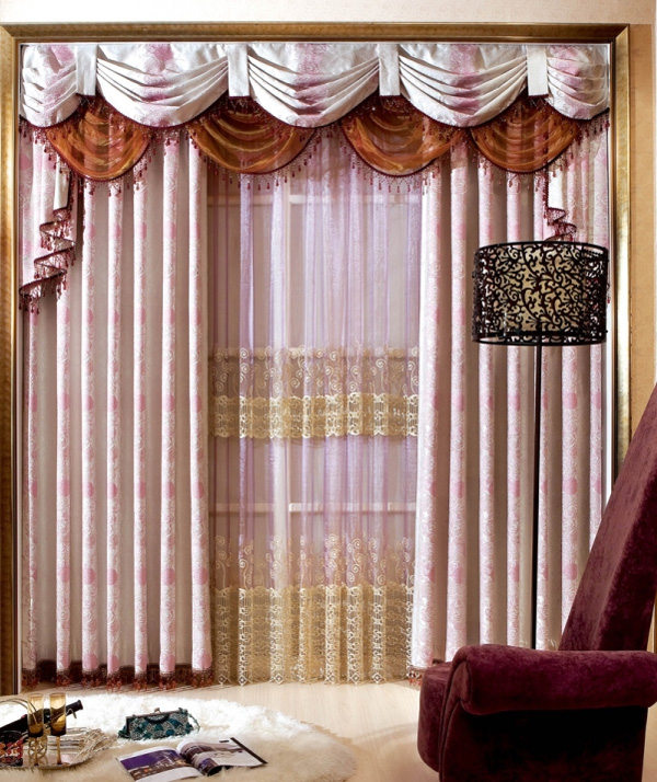 花型、色彩及款式:花型以抽象的花卉圖案為主;色彩濃郁,以深色調(diào)為主。如:紫色、玫紅。平過簾頭或波浪簾頭款式均可使用。