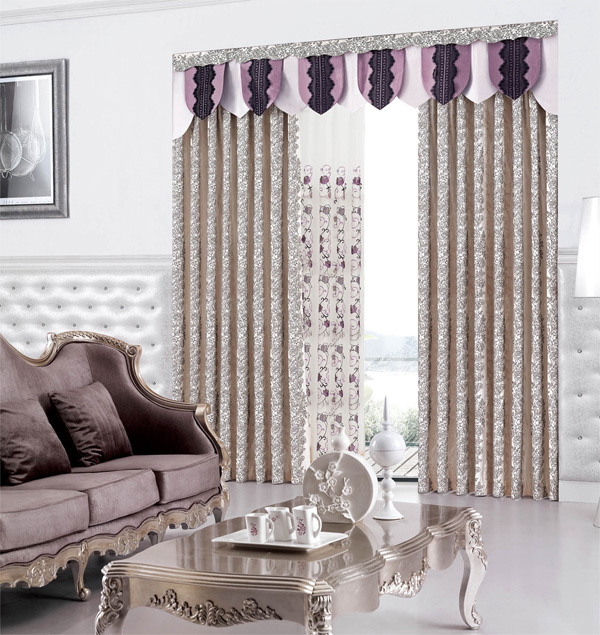 花型、色彩及款式:花型以抽象的花卉圖案為主;色彩濃郁,以深色調為主。如:紫色、玫紅。平過簾頭或波浪簾頭款式均可使用。