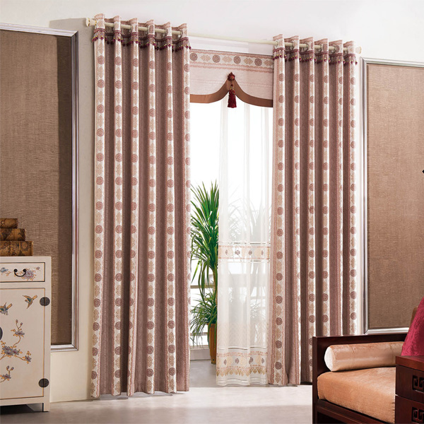 花型、色彩及款式:花型上采用中國傳統的圖案(如:和氏壁、祥云、圍棋等),體現中國美學;以棕色調、米色調為主,款式可采用直線造型的平過簾頭、水波簾頭或二者相結合的形式。